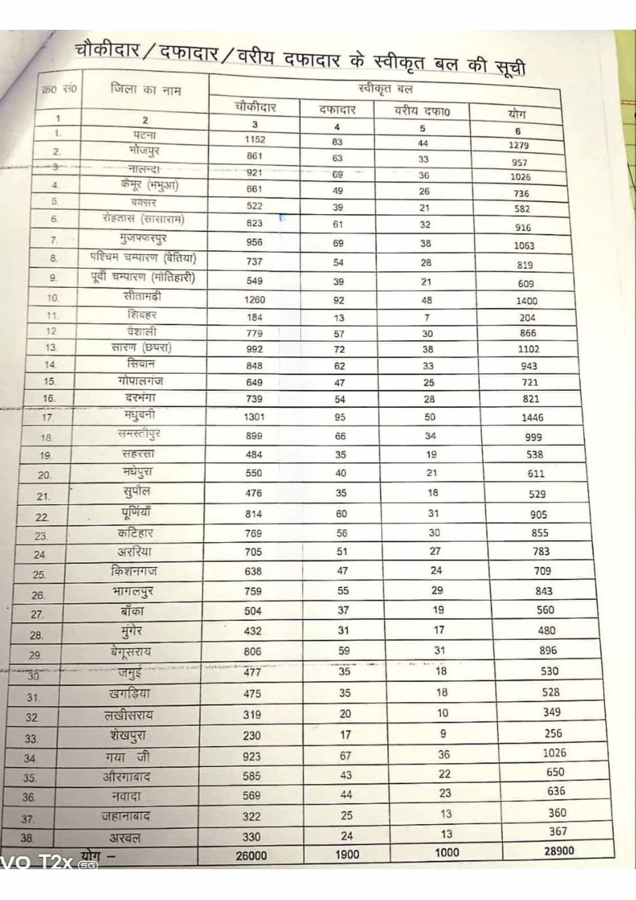 Bihar Chaukidar Vacancy 2026 : Post Details District Wise